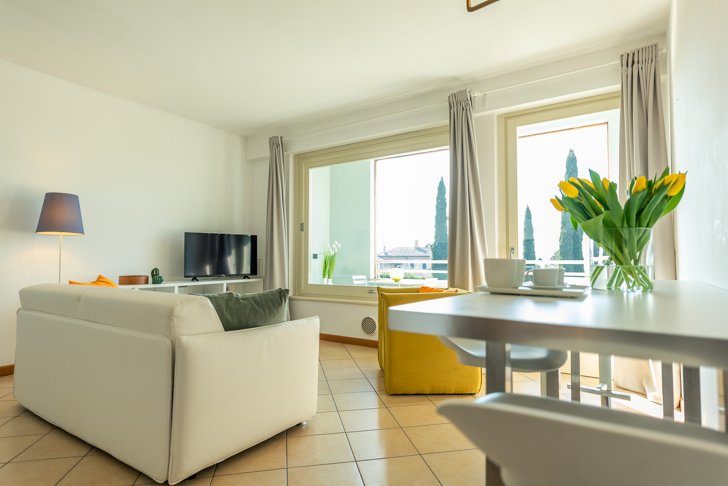 Appartamenti privati in edificio di circa 75 m² accessibili con ascensore. Dispongono di terrazza vista lago oppure vista città.